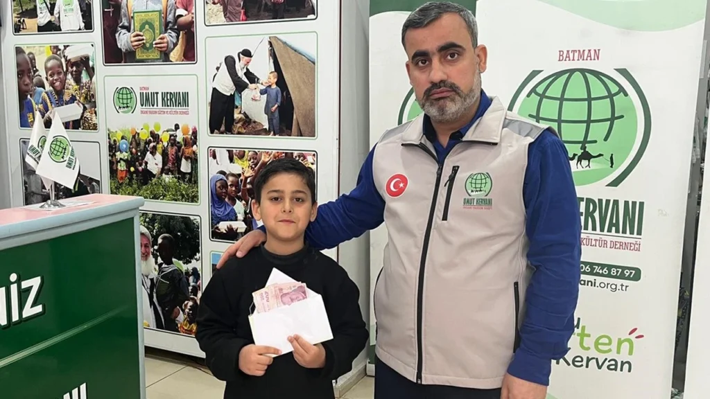 Bayram coşkusunun yaklaştığı bu günlerde, 11 yaşındaki Muhammed Eymen Yıldızhan, Gazze’deki çocuklara umut olmak amacıyla kumbarasını açtı. Küçük yaşına rağmen gösterdiği bu anlamlı davranış, toplumda dayanışma ruhunu pekiştiren önemli bir örnek teşkil etti. Gazze’deki çocukların bayram sevinci yaşamaları için biriken harçlıklarını Umut Kervanı‘na teslim eden Muhammed Eymen, bu hareketiyle tüm Batman halkına ilham verdi.